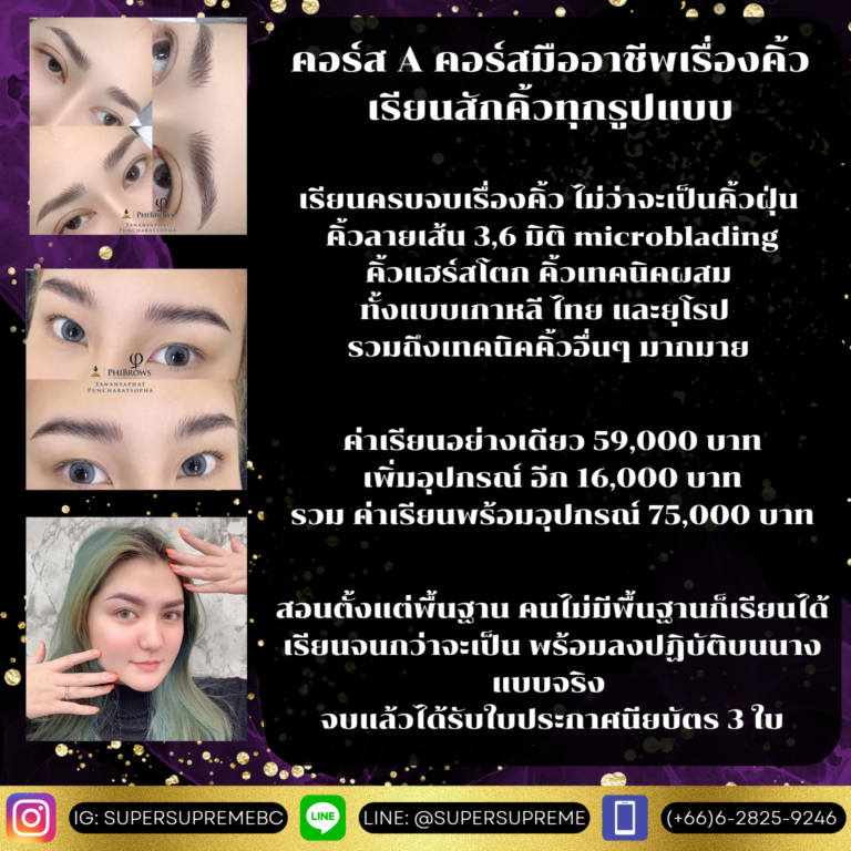 คอร์ส A คอร์สมืออาชีพเรื่องคิ้ว เรียนสักคิ้วทุกรูปแบบ เรียนครบ จบเรื่องคิ้ว