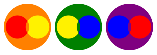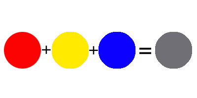 สีแดง + สีเหลือง + สีน้ำเงิน อย่างละเท่ากัน จะได้สีเทา