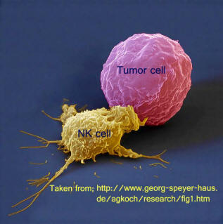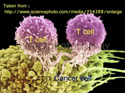 รูปที่1 รูปจำลองจากคอมพิวเตอร์ของแมกโครฟาจเข้าโจมตีเซลล์มะเร็ง