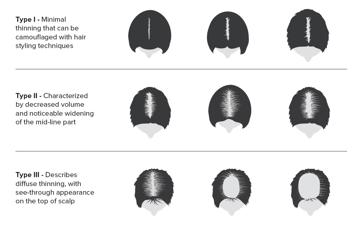 เราจะใช้งานขนาดผมร่วงของลุดวิก เพื่อแสดงให้เห็นถึงรูปแบบการหลุดร่วงของเส้นผมในผู้หญิง มันกำหนดรูปแบบการสูญเสียเส้นผมหลายประเภทที่เกี่ยวข้องกับศีรษะล้านแบบผู้หญิงและสามารถช่วยคุณกำหนดระดับการหลุดร่วงของเส้นผม มันมีประโยชน์สำหรับวัตถุประสงค์ของการวินิจฉัยและการอภิปรายและสามารถช่วยคุณและแพทย์ของคุณกำหนดขั้นตอนต่อไป